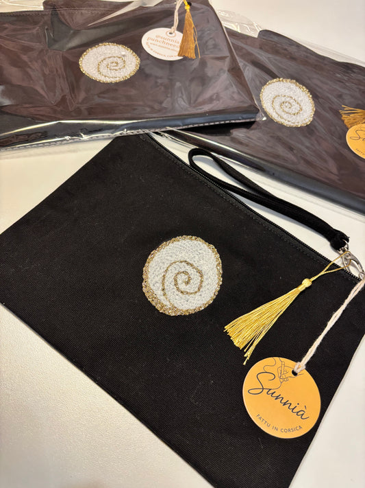 Découvrez les pochettes Sunnià, des créations artisanales, élégantes et raffinées, brodées à la main en Corse avec un savoir-faire unique.
