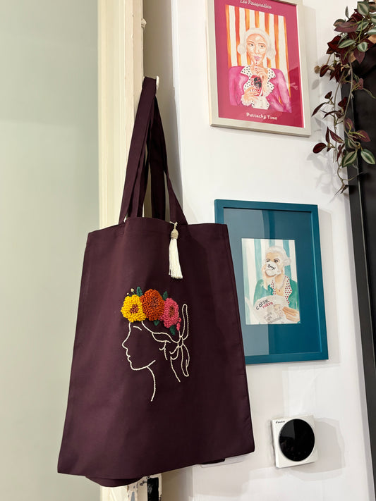 Tote Bag Aubergine – Interprétation Féminine de la Tête de Maure