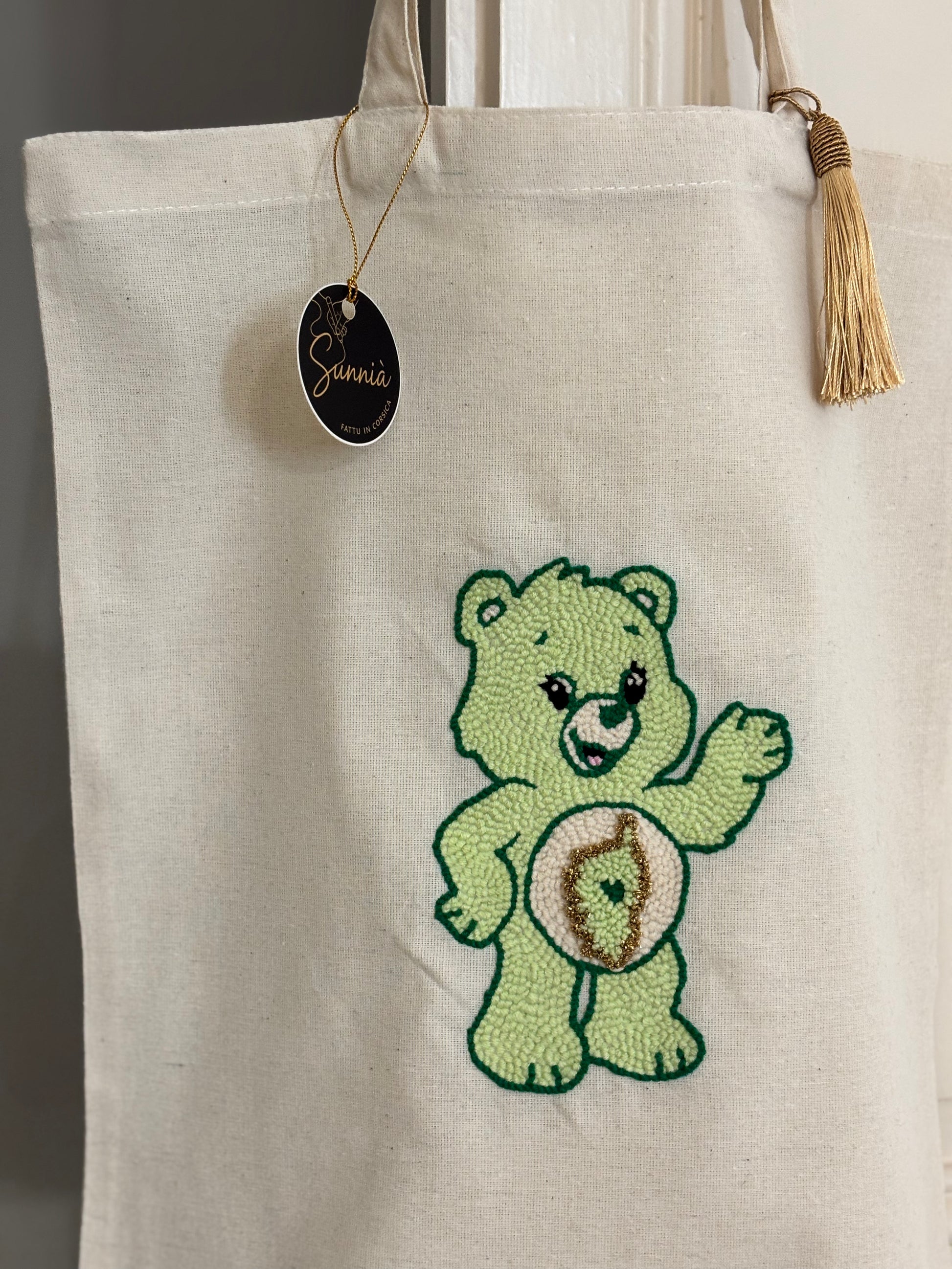 Our tote bags are handmade and require gentle care. Hand wash in cold water, dry flat, and avoid ironing directly on the embroidery.