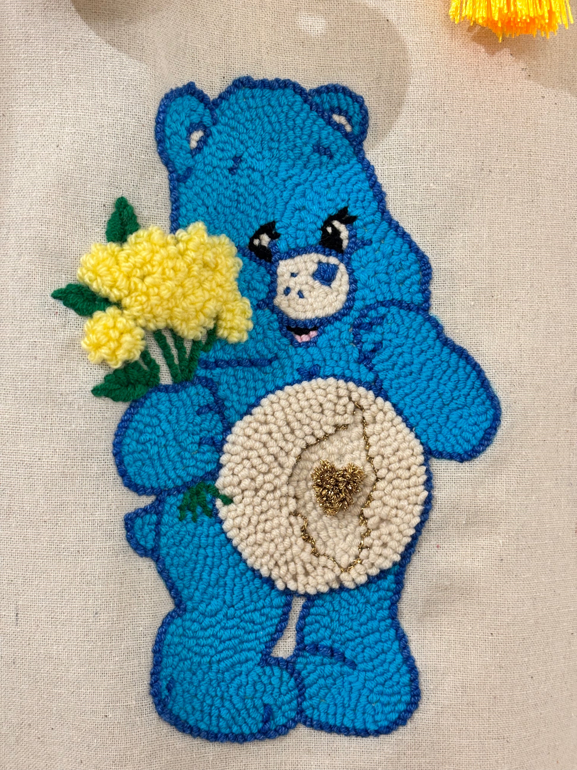 Un adorable ourson revisité façon Sunnià, entièrement brodé à la main en punch needle.