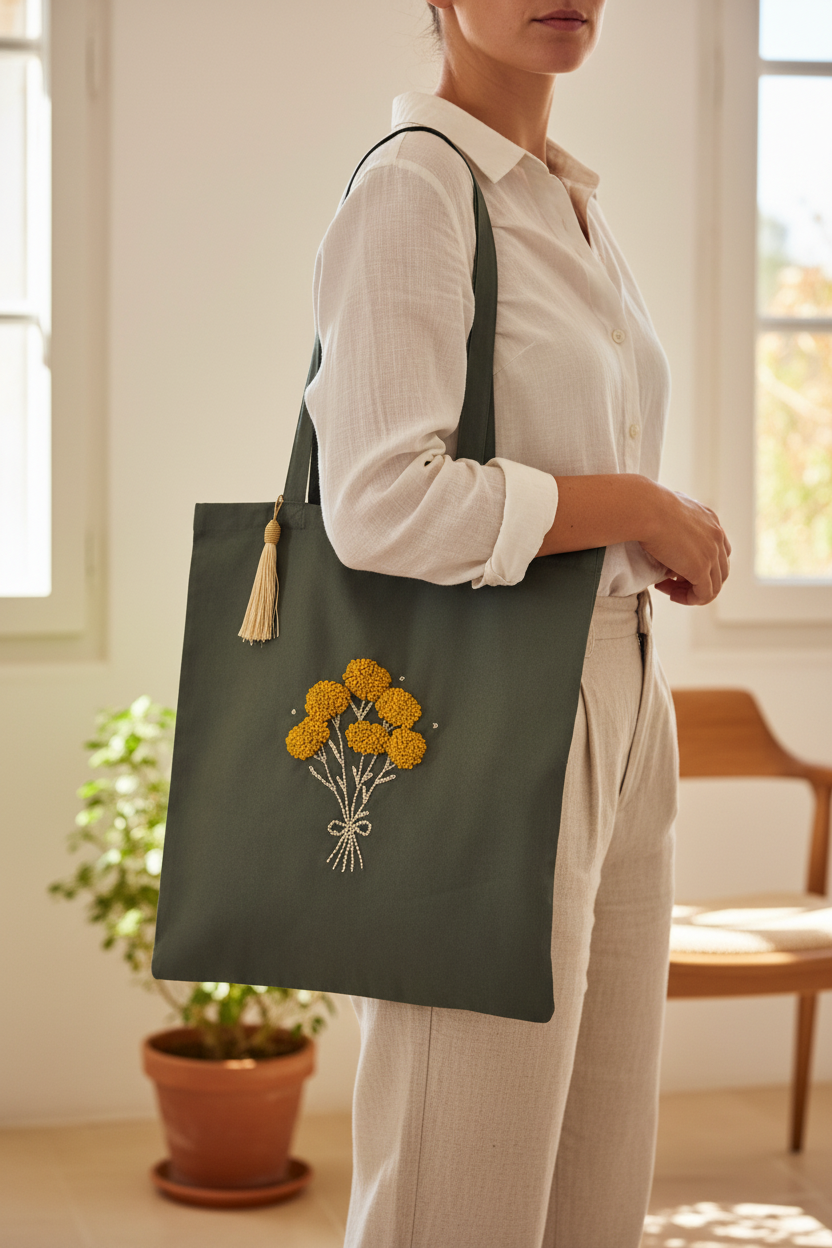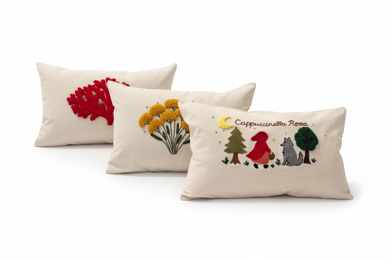 Tote bags brodés, coussins, pièces uniques…