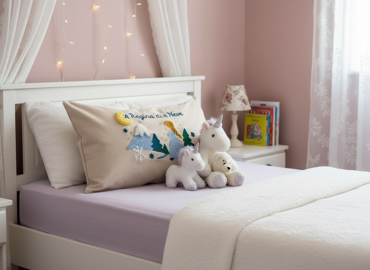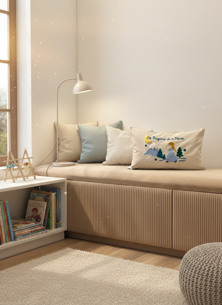 Découvrez A Regina di a Neve, un coussin doux, féerique et entièrement réalisé en punch needle.