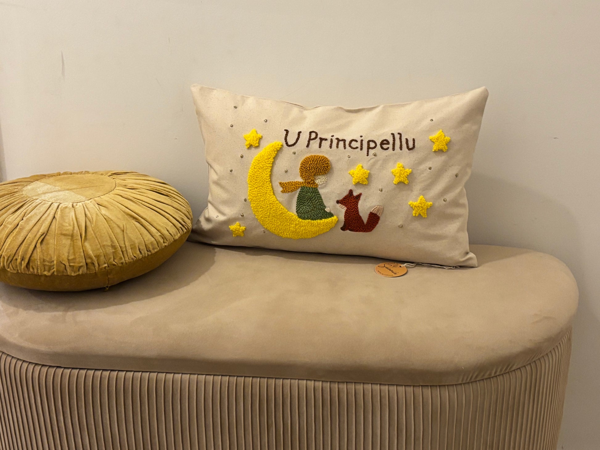 Plongez dans l’univers tendre et rêveur du Principellu avec cette création brodée entièrement à la main.